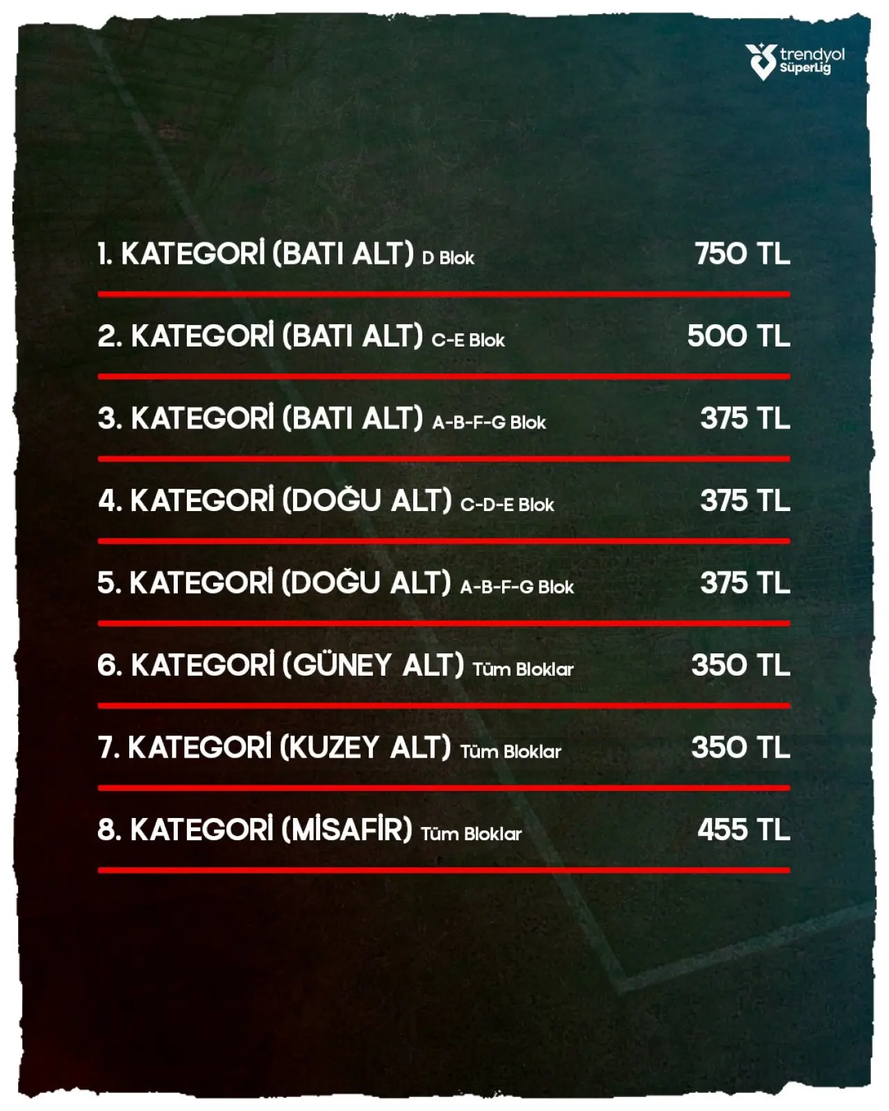 Biletler 350 ile 750 TL arasında değişiyor. Konyaspor taraftarın ayrılan misafir takım tribünü bileti ise 455 TL olarak belirlendi. Yeşil-beyazlı taraftarlar, maç için Antalya'ya çıkarma yapacak.