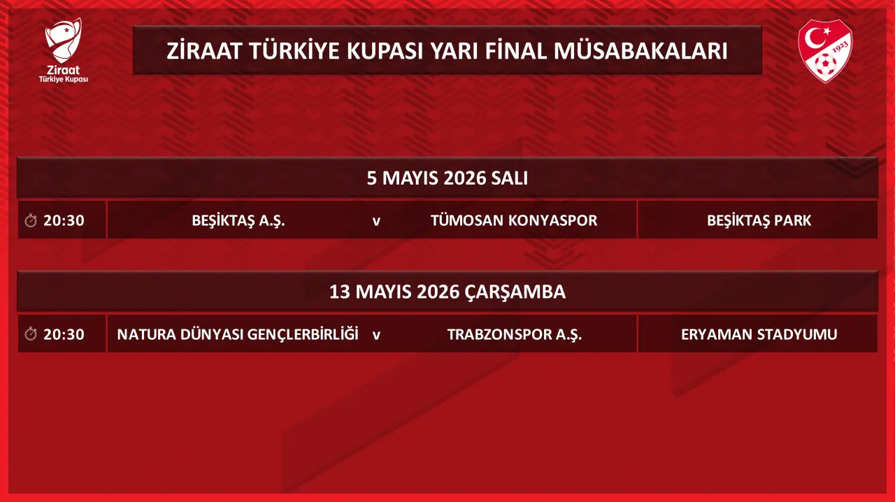 5 Mayıs Salı: 20.30 Beşiktaş- T.Konyaspor (Tüpraş)