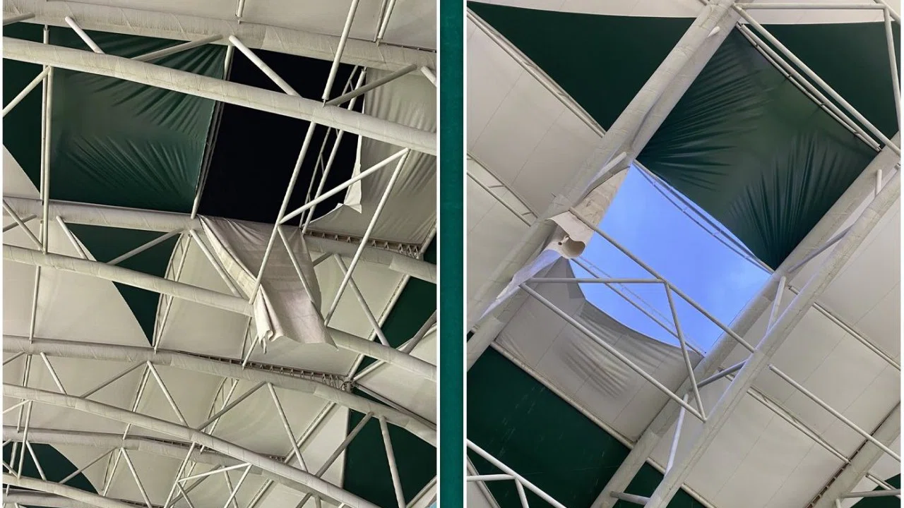 Büyükşehir Belediyesi yetkilileri, stadyumdaki hasarlı ve yırtık yerlerin onarımını yapıyor. Çalışmalar, 3 Kasım Pazar günü iç sahada oynanacak Başakşehir maçına kadar tamamlanacak.
