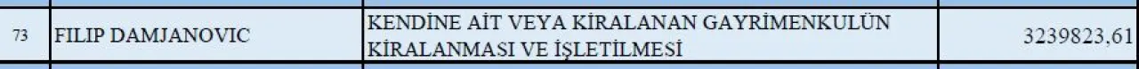Listede Konyaspor’da ayrıldıktan sonra kira geliri elde eden Polonyalı kaleci Jakub Slowik ve Sırp stoper Filip Damjanovic de bulunuyor. Slowik 7 milyon 639 bin TL ile Konya’nın vergi rekortmenleri listesinde 23. olurken, Sırp stoper Filip Damjanovic de 3 milyon 239 bin TL ile 73. oldu.