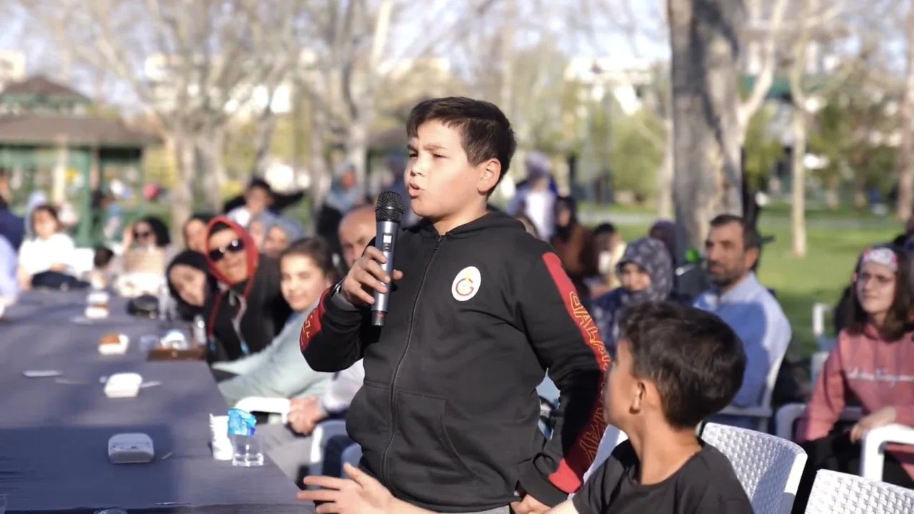 Minik Galatasaray taraftarı ile Başkan Kılca arasında geçen bu esprili diyalog, etkinliğe neşeli anlar kattı.