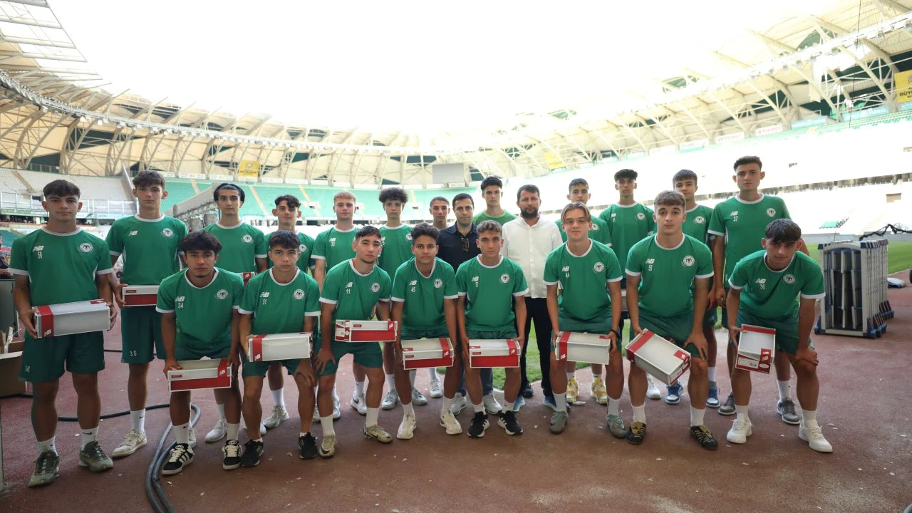 Konyaspor Yönetim Kurulu Üyelerinden Mustafa Damkacı ile Ferdi Kabakcı, U16 takım ile bir araya geldi ve genç oyuncuların hediyelerini takdim etti.