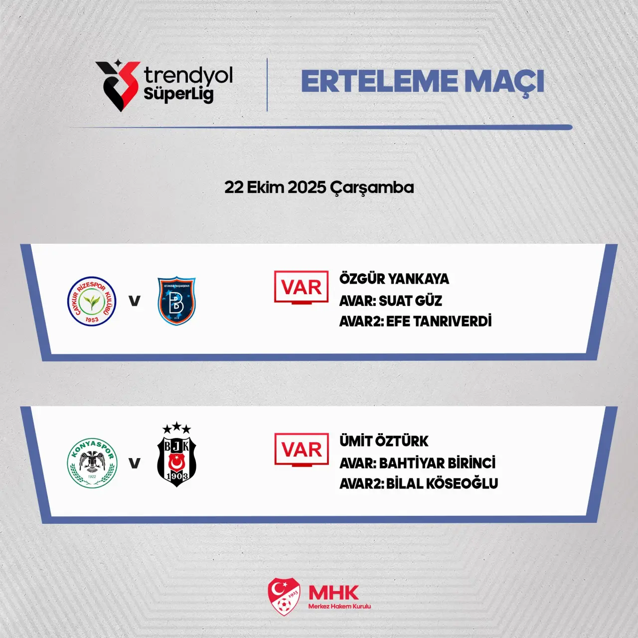 Trendyol Süper Lig'de bugün 3. haftanın erteleme maçları oynanacak. Tümosan Konyaspor ile Beşiktaş, bugün saat 20.00'de karşı karşıya gelecek. Müsabakada orta hakem olarak Ozan Ergün düdük çalacak.