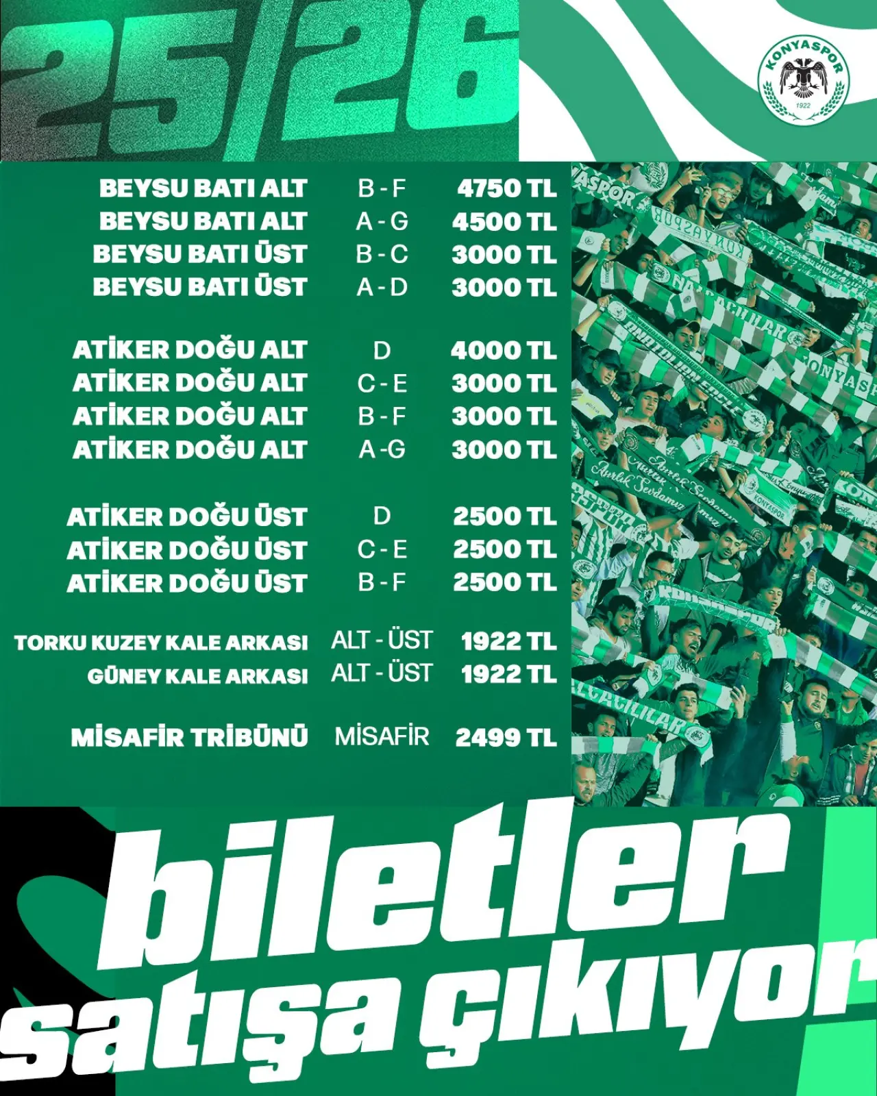 MEDAŞ Konya Büyükşehir Stadyumu'nda saat 20.00'de başlayacak maçın biletleri bugün saat 18.00'de satışta olacak.