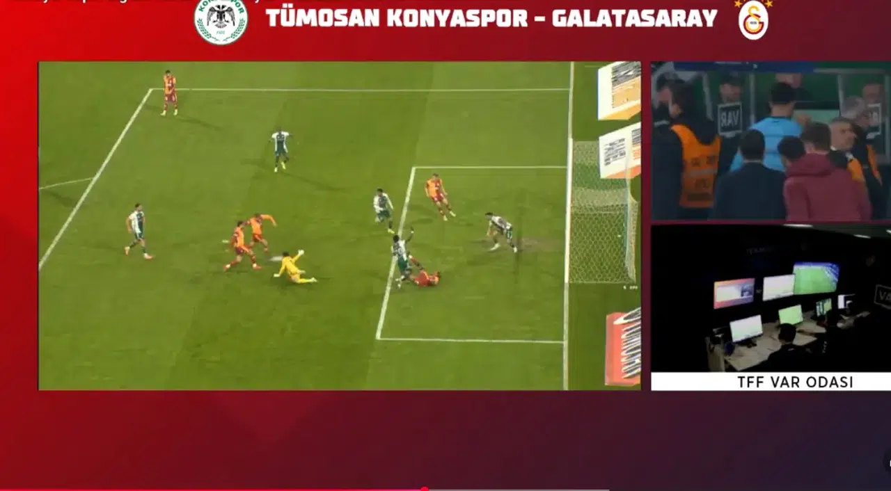 TFF'nin YouTube kanalından yayınlanan kayıtta, Konyaspor-Galatasaray maçında yaşanan ve VAR incelemesinin ardından ofsayt gerekçesiyle iptal edilen Sane'nin golünün VAR konuşmaları yer aldı.