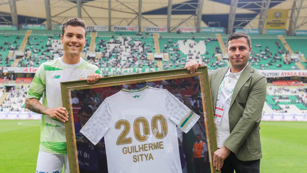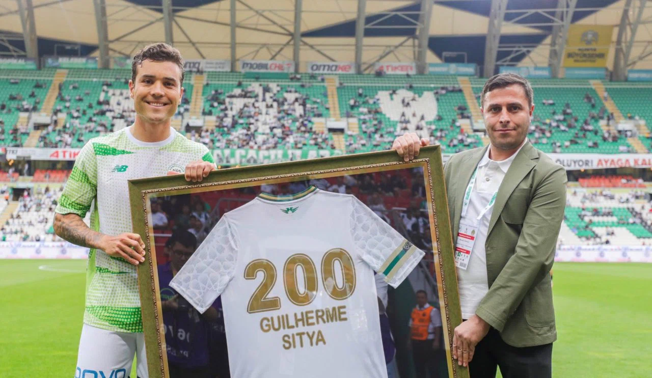 Guilherme, Alanyaspor maçıyla birlikte Konyaspor formasıyla 200. resmi maçına çıkarak ikinci kez ‘dalya’ dedi. Brezilyalı sol beke maçtan önce Konyaspor Yönetim Kurulu Üyesi Mustafa Damkacı tarafından günün anısına bir plaket takdim edildi. Guilherme’yi özel gününde taraftarlar da alkışladı.