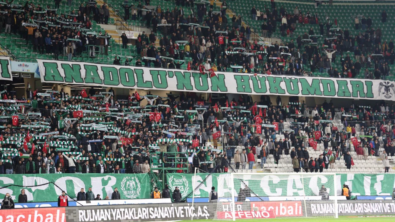 Konyasporlu taraftarlar hep birlikte ‘Kahrolsun İsrail, Filistin’e özgürlük’ tezahüratı yaptı.