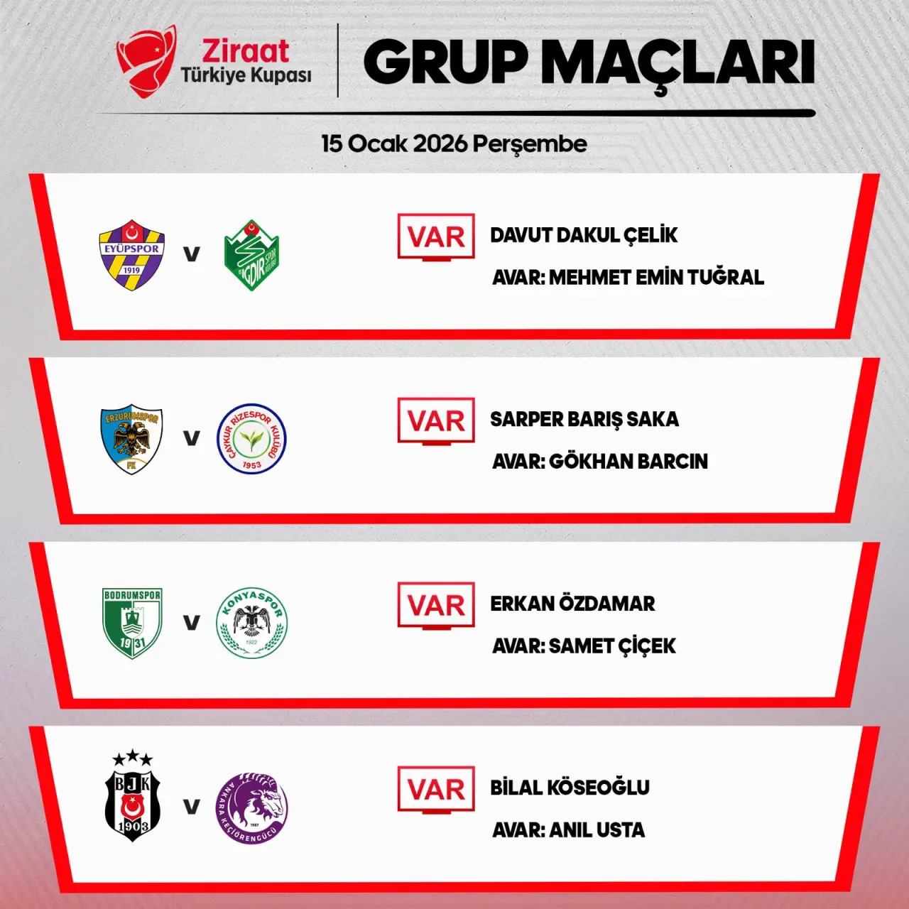 Mücadelenin VAR hakemi de açıklandı. Karşılaşmada VAR koltuğunda Erkan Özdamar oturacak. TFF'nin Riva'daki VAR merkezinde, karşılaşma için AVAR olarak ise Samet Çiçek görev yapacak.
