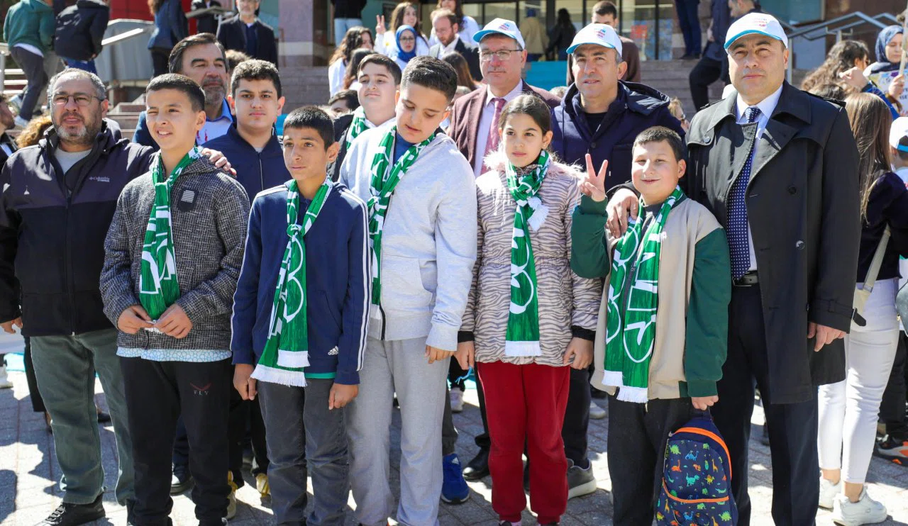 Uçar, etkinlik sonunda çocuklara forma ve atkı hediye etti.