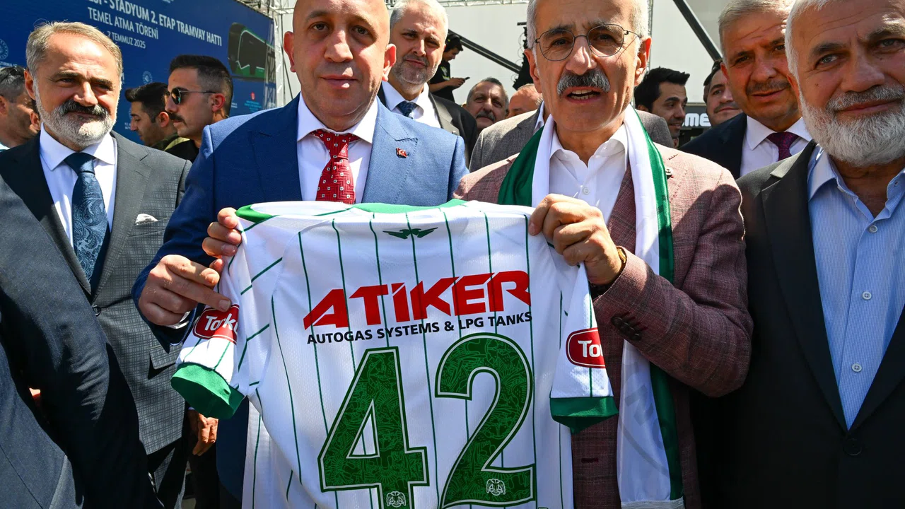 Konyaspor'dan yapılan açıklamada, "2. Başkanımız Celalettin Hakan Katırcı, Stadyum - Şehir Hastanesi Tramvay Hattı Temel Atma Töreni için şehrimize teşrif eden Ulaştırma ve Altyapı Bakanımız Sayın Abdulkadir Uraloğlu'na forma ve atkı takdim etti" denildi.