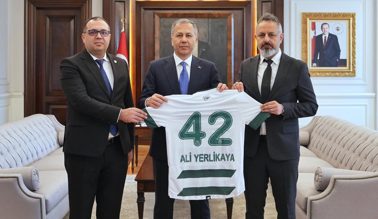 Bir süredir destek ziyaretleri yapan Konyaspor yönetimi, Ankara'da önemli ziyaretler yaptı. Konyaspor Başkanı Ömer Korkmaz ve Başkan Yardımcısı Mahmut Güzel, Konyalı olan İçişleri Bakanı Ali Yerlikaya'yı ziyaret etti. Ziyarette Konyaspor noktasında istişarerde bulundu. Konyaspor yönetimi, Bakan Yerlikaya'ya forma hediye etti