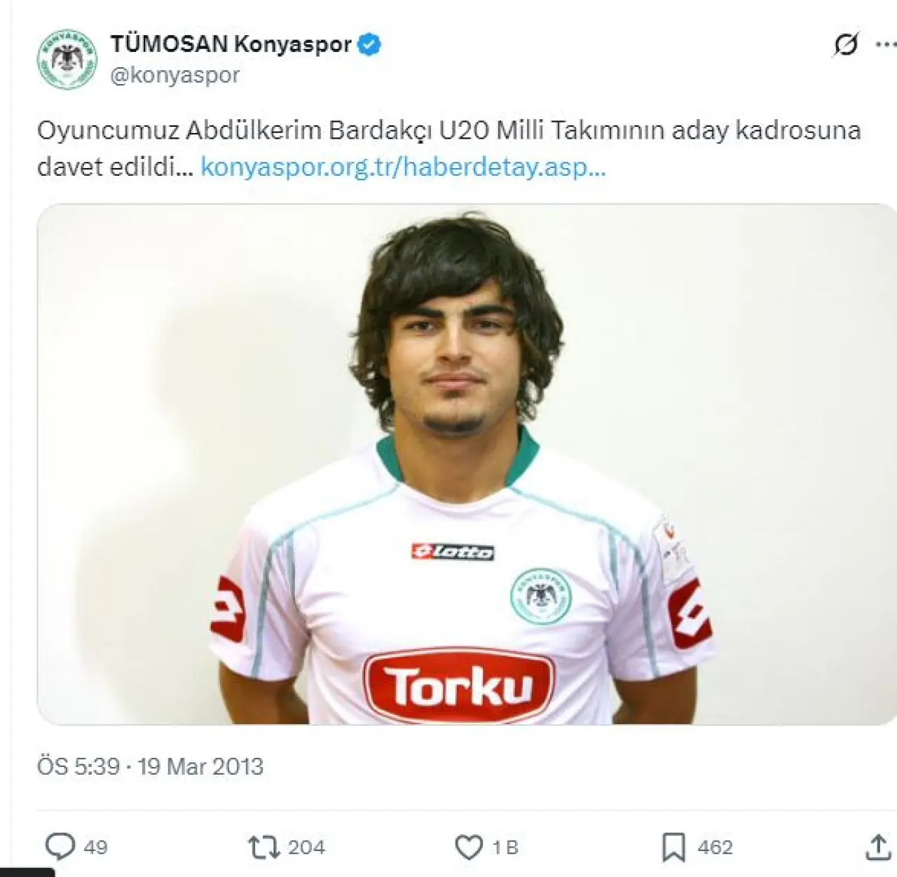 Konyaspor altyapısından yetişen deneyimli futbolcu için geçmiş yıllardaki twit gündem oldu. Konyaspor kulübünün 19 Mart 2013'te X'teki “Oyuncumuz Abdülkerim Bardakçı U20 Milli Takımının aday kadrosuna davet edildi” paylaşımı Galatasaray - Liverpool maçından sonra gündeme oturdu.