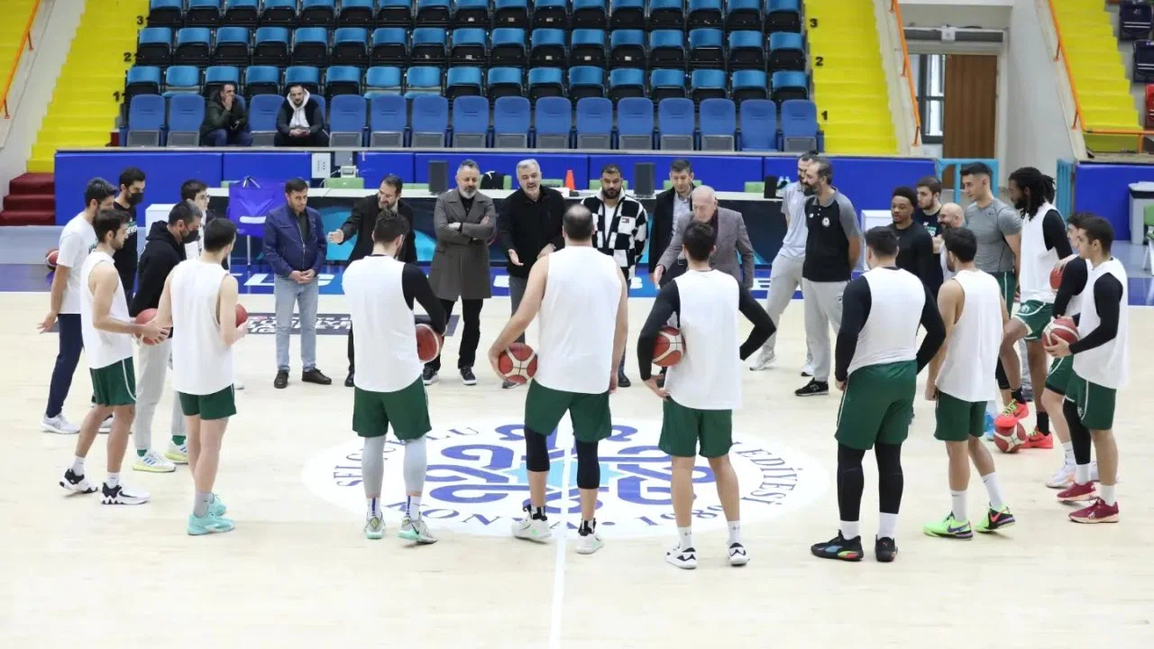 Başkan Korkmaz, beraberinde İkinci Başkan Adem Bulut ve Basketbol Şubeden Sorunlu Başkan Yardımcısı Yunus Derebağ ve yönetim kurulu üyeleri ile birlikte antrenmanı ziyaret etti.