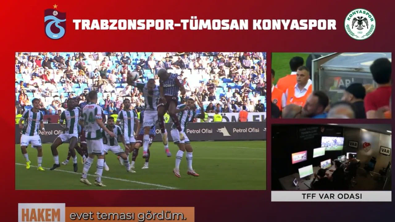 İkinci devrede Trabzonspor atağında Banza'nın kafa vuruşunda top Blaz Kramer'in eline çarpmıştı. VAR hakemi Direnç Tonusluoğlu, orta hakem Halil Umut Meler'i izlemeye davet etmişti.