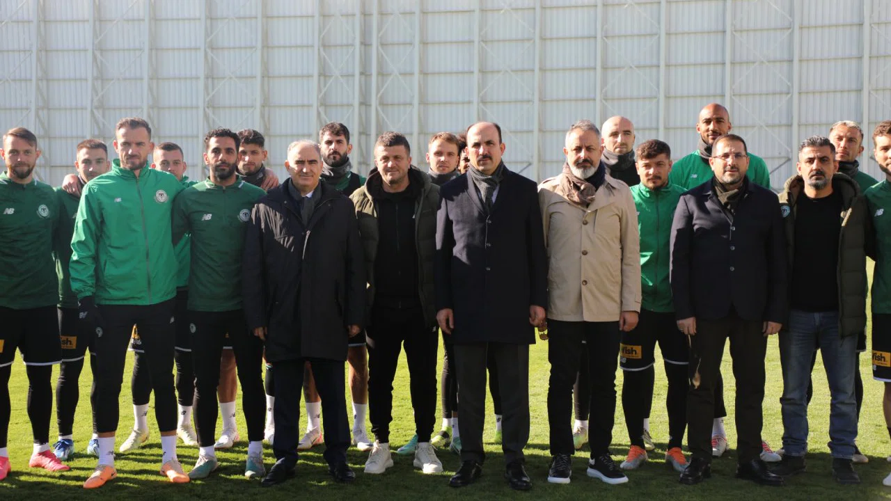 Vali Özkan ve Başkan Altay, teknik heyet ve oyuncularla görüşerek desteklerini vurguladı.