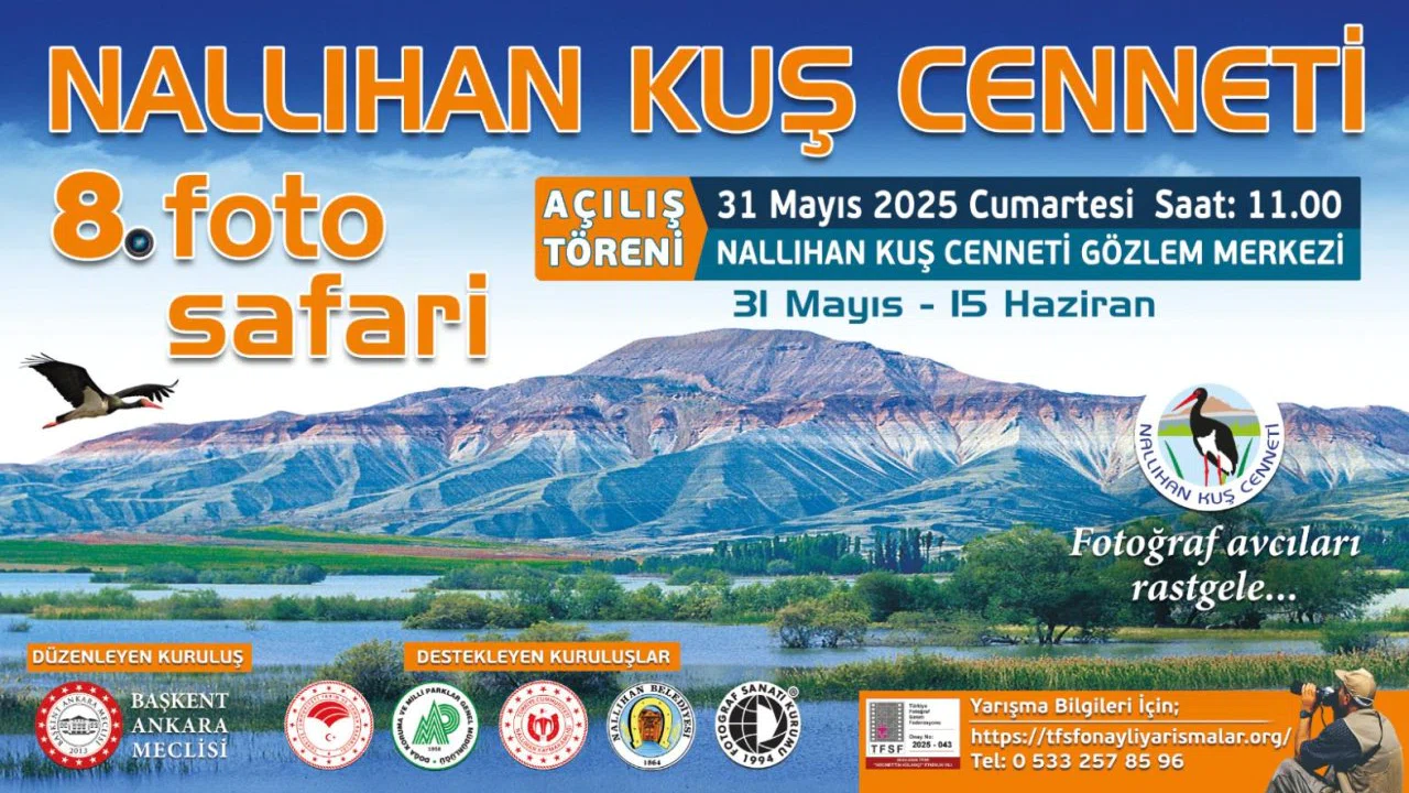 Ankara’nın eşsiz doğa harikalarından biri olan Nallıhan Kuş Cenneti ve çevresindeki korunan alanlarda 8. Foto Safari düzenleniyor. Başkent Ankara Meclisi’nin öncülüğünde gerçekleştirilecek etkinlik, doğa ve fotoğraf tutkunlarını 31 Mayıs Cumartesi günü Nallıhan’da bir araya getirecek.
