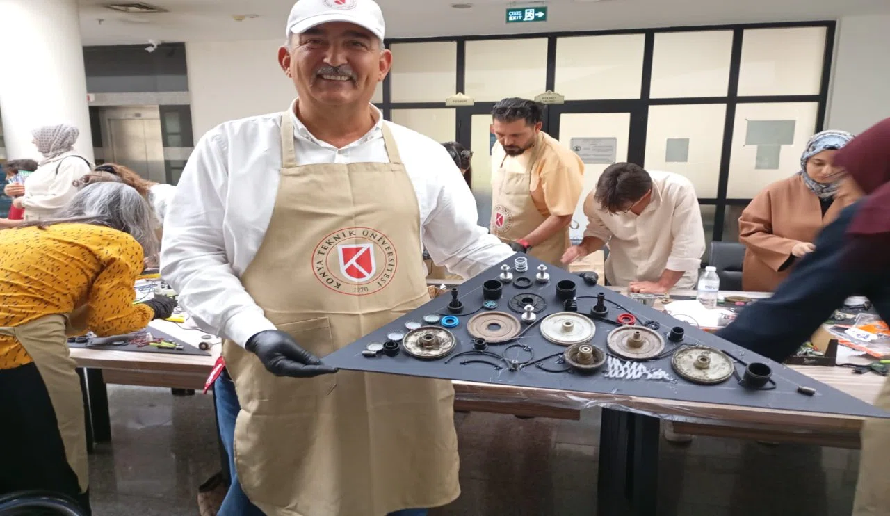 Konya Teknik Üniversitesi’nin sıfır atık bilincini yaymak amacıyla düzenlediği etkinlik kapsamında, Teknik Bilimler Meslek Yüksekokulu Öğretim Üyesi Prof. Dr. Yağmur Küçükbezirci, atıklardan yaptığı eserlerini sergiledi.