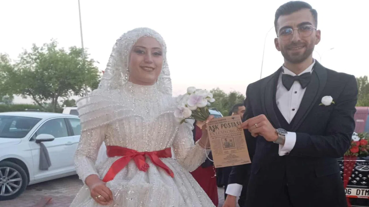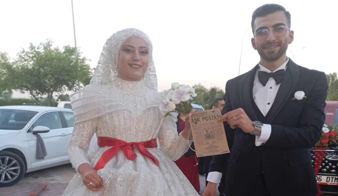 Konya’da Elif ve Kaan Dağ çifti, nikah ve düğün törenlerine katılacak misafirleri için hazırladıkları farklı davetiyeyle dikkat çekti. Çift, klasik davetiye tasarımlarının dışına çıkarak, davetiyelerini gazete sayfası formatında hazırladı.