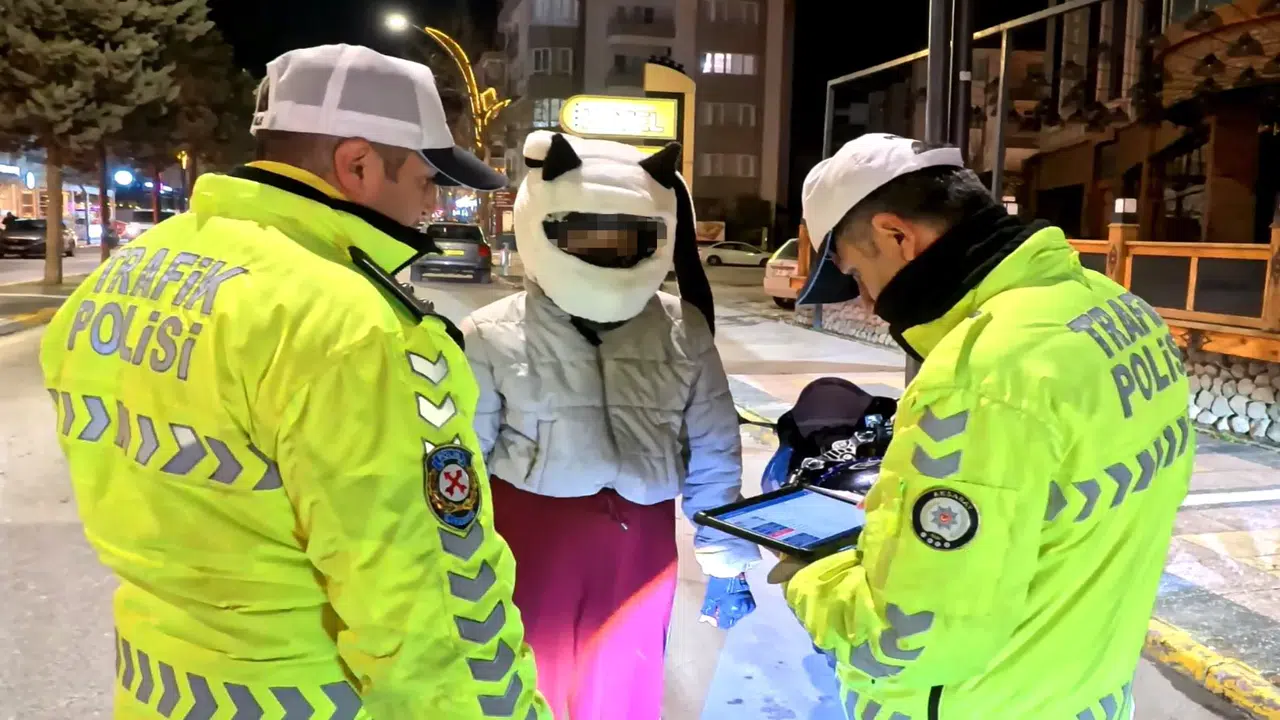 Tiyatro kavşağından şehir merkezi istikametine seyreden ve Semanur Ü. idaresindeki motosiklet, ekiplerce kontrol altına alındı. Yapılan ehliyet ve ruhsat incelemesinde sürücünün kullandığı motosiklet için yeterli ehliyete sahip olmadığı belirlendi.