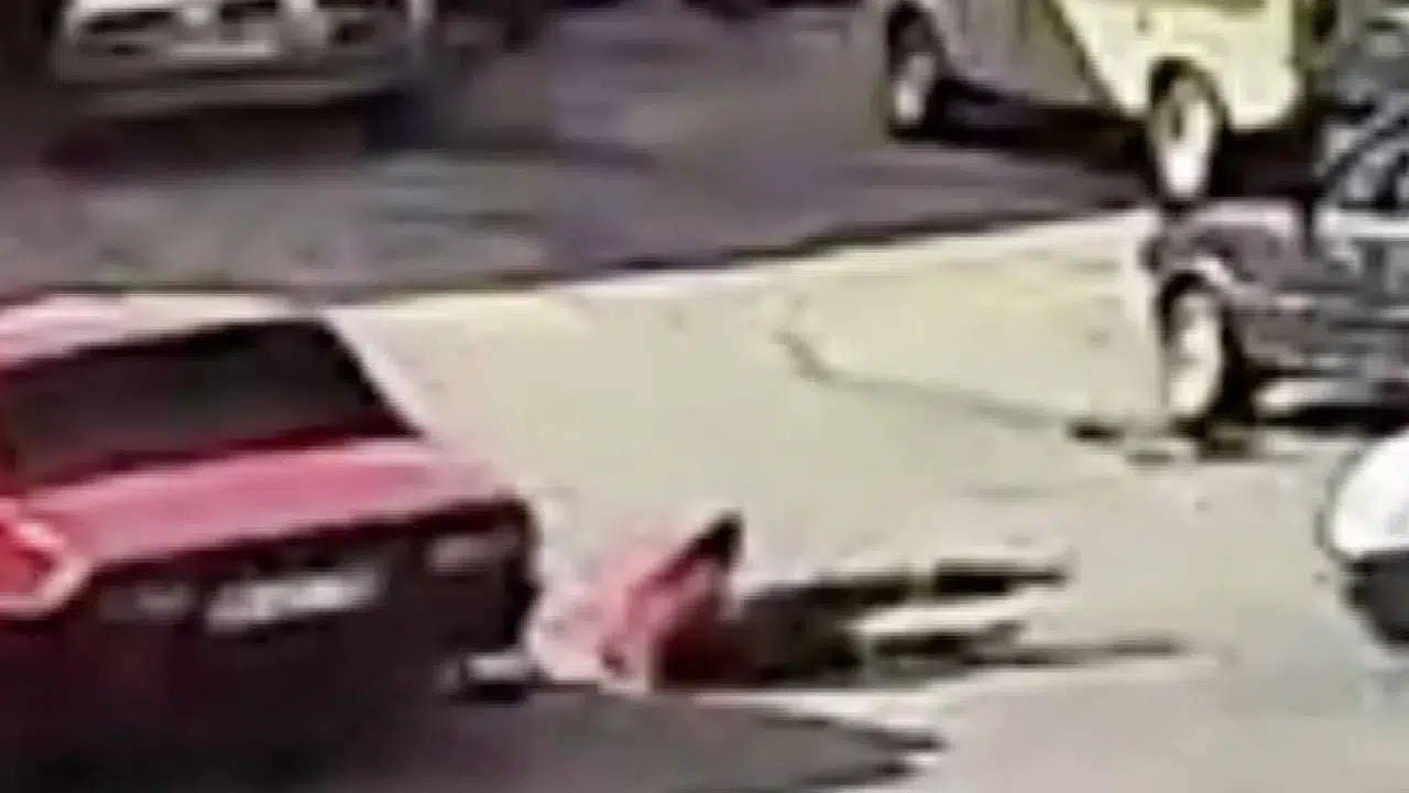 Öte yandan, kaza anı bir iş yerinin güvenlik kamerasına yansırken, görüntülerde motosikletin araca çarpmamak için manevra yaptığı ve park halindeki otomobile çarptığı görülüyor.