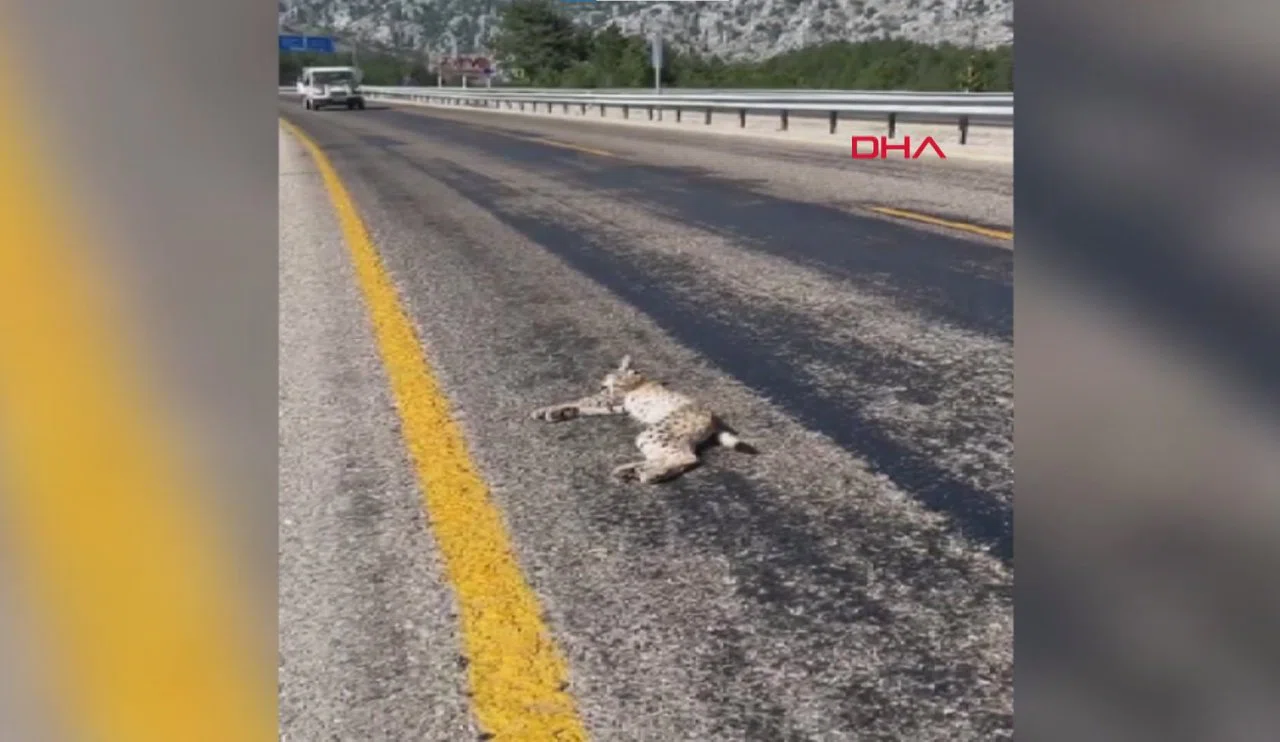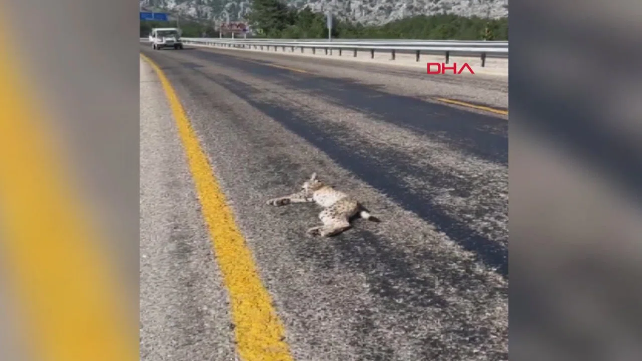 Bir aracın çarpması sonucu öldüğü tahmin edilen kara yolu üzerinde yatar vaziyetteki vaşağı görenler Doğa Koruma ve Milli Parklar Bölge Müdürlüğü ekiplerine haber verdi.