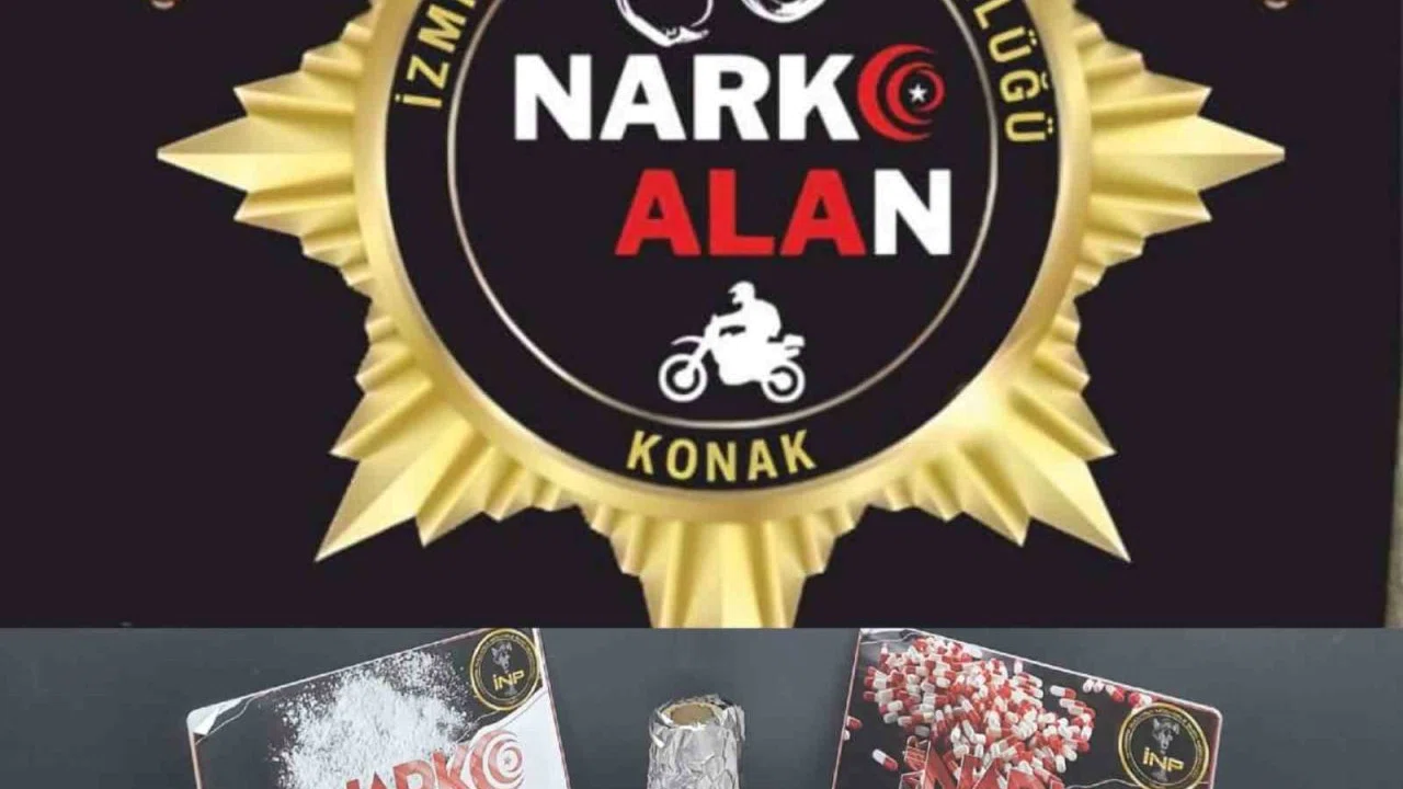 Konak İlçe Emniyet Müdürlüğü Suç Önleme Ve Soruşturma Büro Amirliği ve Narko Alan ekipleri, ilçede bulunan ve adresi belirlenen iki ayrı adreste uyuşturucu ticareti yapıldığını tespit etti. Savcılıktan alınan izinle adreslere gerçekleştirilen operasyonda, 28.78 gram taş kokain, 7 meşe halinde toplam 4.94 gram esrar, yeşil reçeteye tabi 171 hap, uyuşturucu ticaretinden elde edilen 14 bin 960 TL ve 15 Euro para, 1 cep telefonu ve meşelemekte kullanılan alüminyum folyo ele geçirildi.