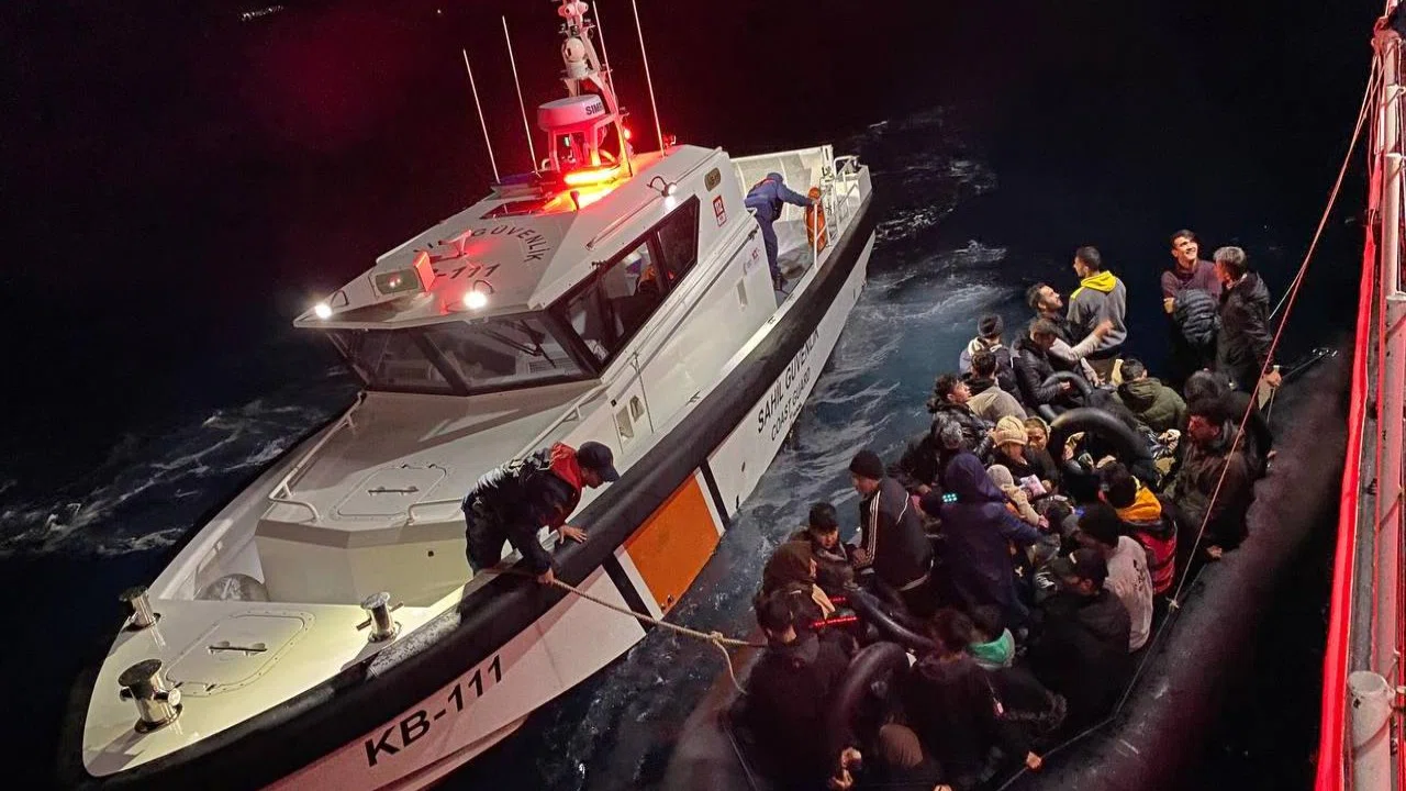Çanakkale'nin Ayvacık ilçesi açıklarında lastik botlardaki 68 düzensiz göçmen yakalandı.