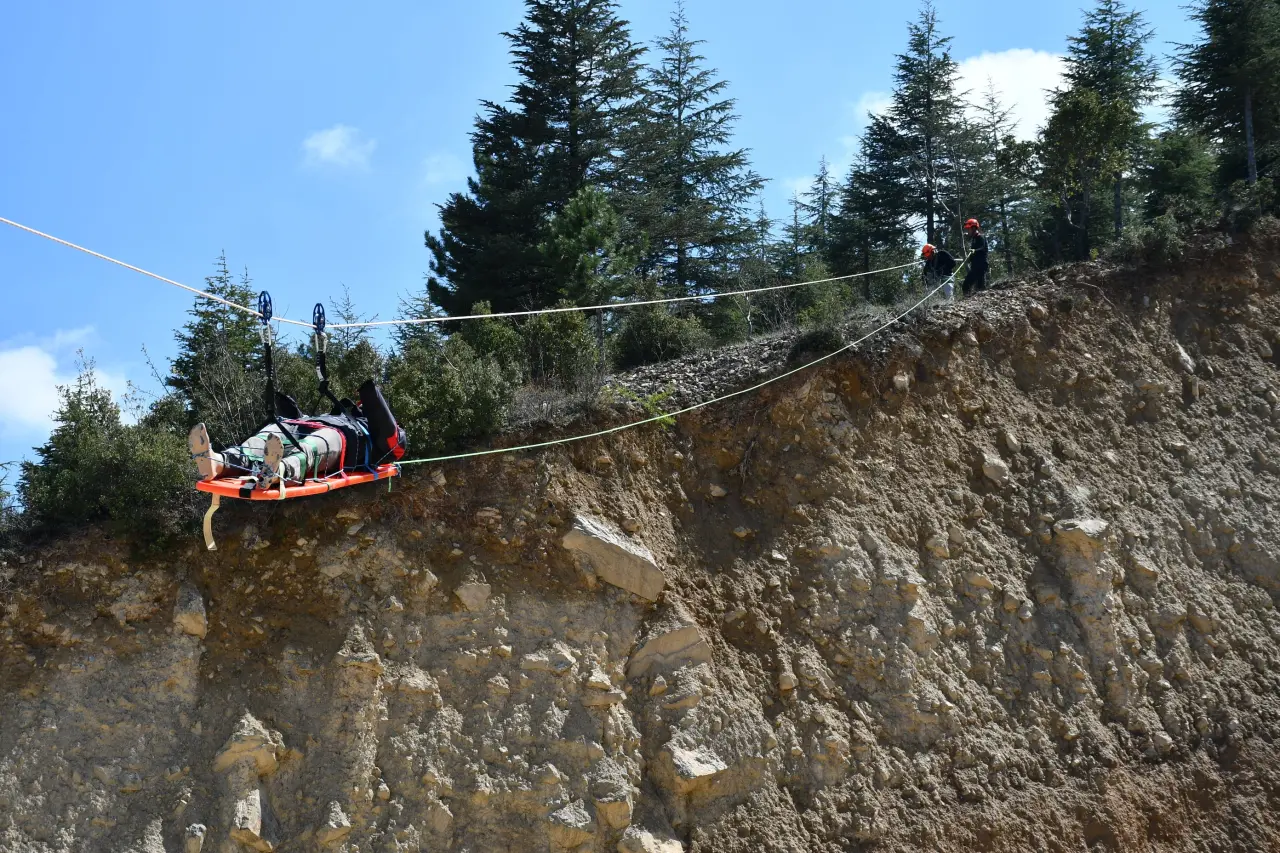 Akşehir ilçe protokolünün de takip ettiği tatbikatta ekipler; yüksekten yaralı tahliyesi, güvenli iniş teknikleri ve ipli erişim uygulamaları üzerinde yoğunlaştı. Senaryo gereği aşağı bölgede bulunan yaralı, ekiplerin koordineli çalışmasıyla güvenli şekilde yukarı taşındı.