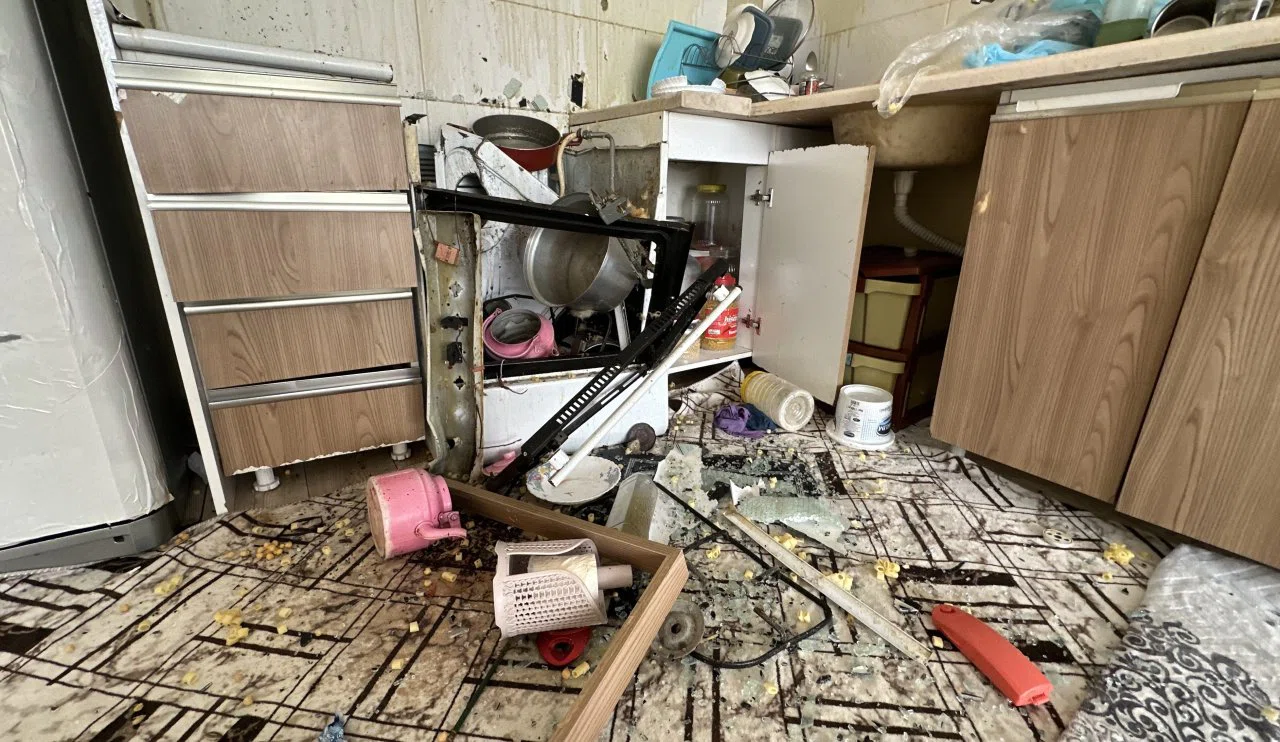 Patlama sonucu annem ellerinden ve yüzünden yaralandı. Gördüğünüz gibi kanlar her yerde, duvara kadar sıçramış durumda. Mutfağımız tamamen kullanılamaz hale geldi. İnanın şu an çok mağdur bir haldeyiz. Resmen bomba gibi patladı ve tüm mahalle sakinleri sesten dolayı buraya geldi. Bizler de uyuyorduk ve patlama sesinden sonra korkuyla uyandık. Çok mağduruz” dedi.