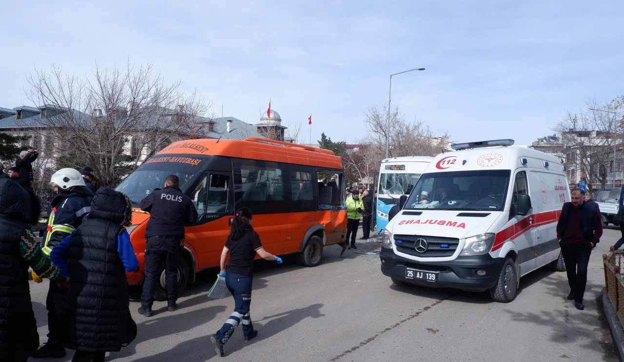 İhbar üzerine kaza yerine polis, itfaiye, AFAD ve 112 ekipleri geldi. Miraç Ü. kullandığı 25 ADJ 897plakalı otomobil, Kemal U. yönetimindeki 25 M 0017 plakalı minibüs ve Tuncay D. yönetimindeki 25 H 0129 plakalı halk otobüsünün karıştığı kazada polis bir taraftan yaralılarla ilgilenirken bir yandan meraklı vatandaşları olay yerinden uzaklaştırmak için çaba harcadı.