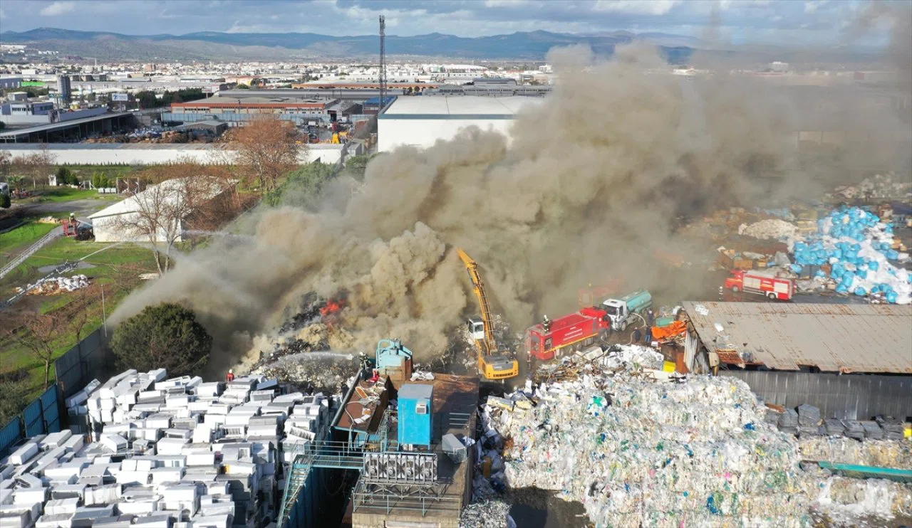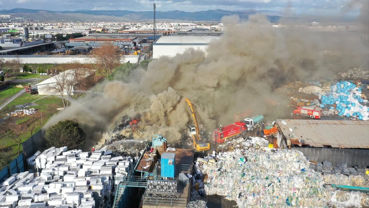 AA'dan alınan habere göre: Manisa'nın Yunusemre ilçesindeki bir geri dönüşüm tesisinde çıkan yangın söndürüldü.