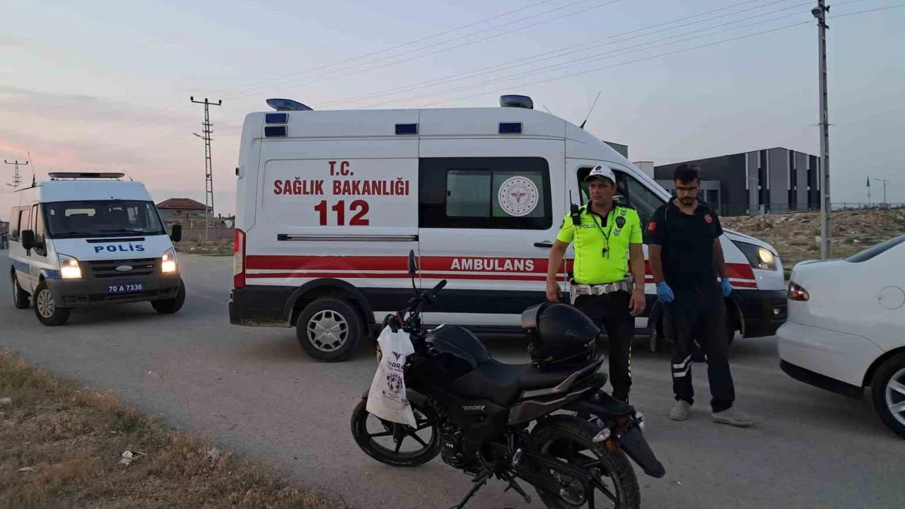 Karaman'da kontrolden çıkan motosiklet sürüklenerek seyir halindeki otomobile çarptı. Kazada yaralanan olmazken, ehliyetsiz olan motosiklet sürücüsüne 18 bin 667 lira para cezası yazıldı.