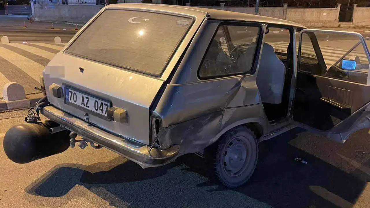Edinilen bilgiye göre, K.Y. yönetimindeki 70 EU 631 plakalı otomobil ile M.A. idaresindeki 70 AZ 047 plakalı otomobil kavşakta çarpıştı. Çarpışmanın şiddetiyle M.A.’nın kullandığı otomobilin bagaj kısmında bulunan LPG tankı yerinden çıktı.