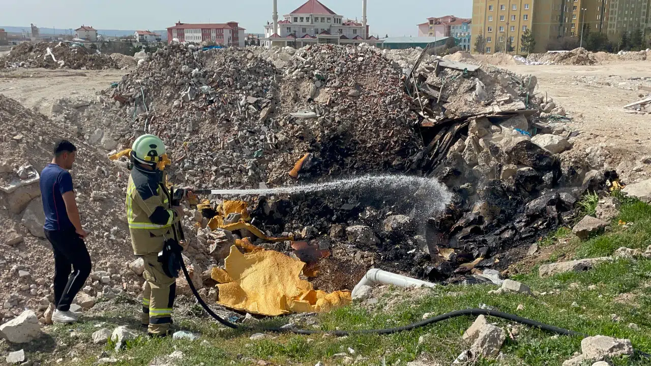 Karaman’da inşaat alanı yakınındaki boş arazide bulunan atık malzemelerin tutuşması sonucu yangın çıktı.