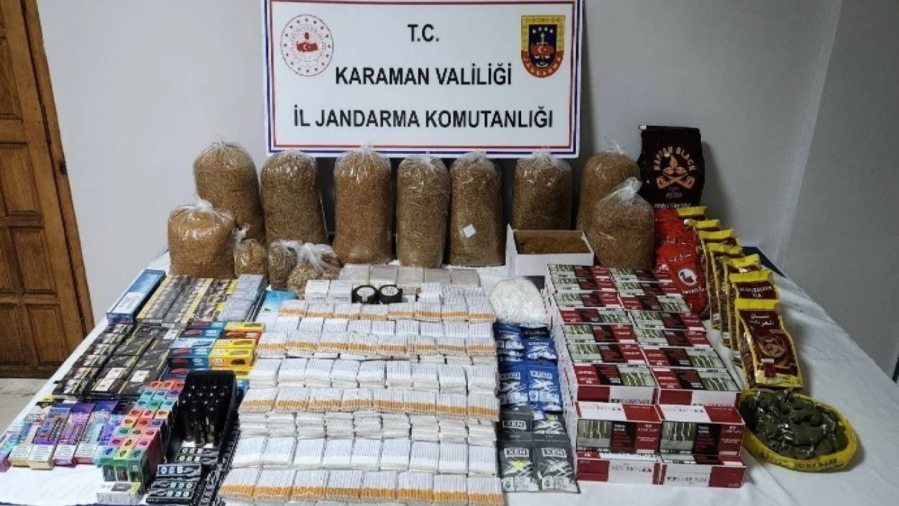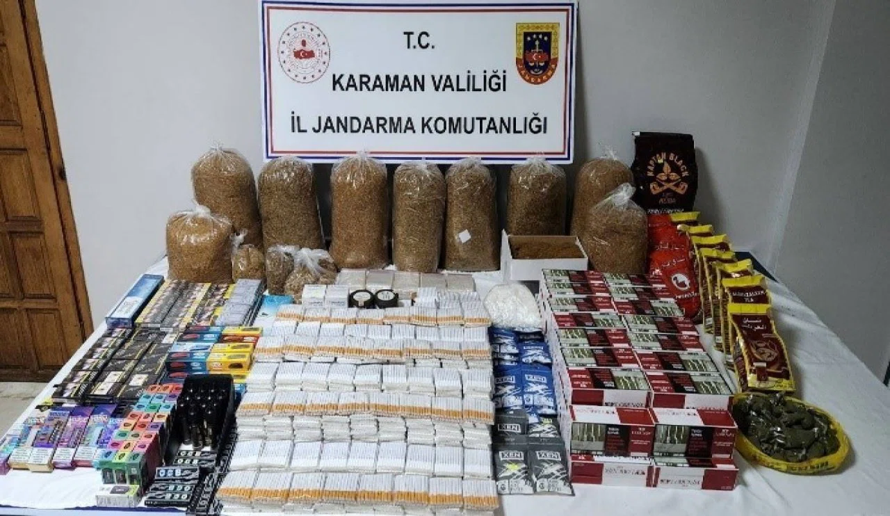 Denetimler sırasında yapılan aramalarda 1 adet kuru sıkı tabanca, 2 adet tabanca şarjörü, 9 milimetre çapında kuru sıkı tabanca fişeği, 1 adet belgesiz motosiklet, 2 adet su motoru, 1 adet gübre tankı, 1 adet vana, 1 adet santrifüj, 1 adet kısa boru, 56 bin 240 gram açık tütün, bin 710 gram maraş otu, 14 bin 346 adet sarılmış makaron, 10 bin adet boş makaron, 31 adet elektronik sigara, 162 adet bandrolsüz sigara, 31 adet sigara sarma aparatı, 4 adet nargile tütünü, 16 adet aroma artırıcı, 5 paket sigara paketlemede kullanılan poşet, 60 paket aromalı sigara, 4 bin 400 gram kaçak çay, 50 metre balık ağı ve 28 adet sazan balığı ele geçirildi.