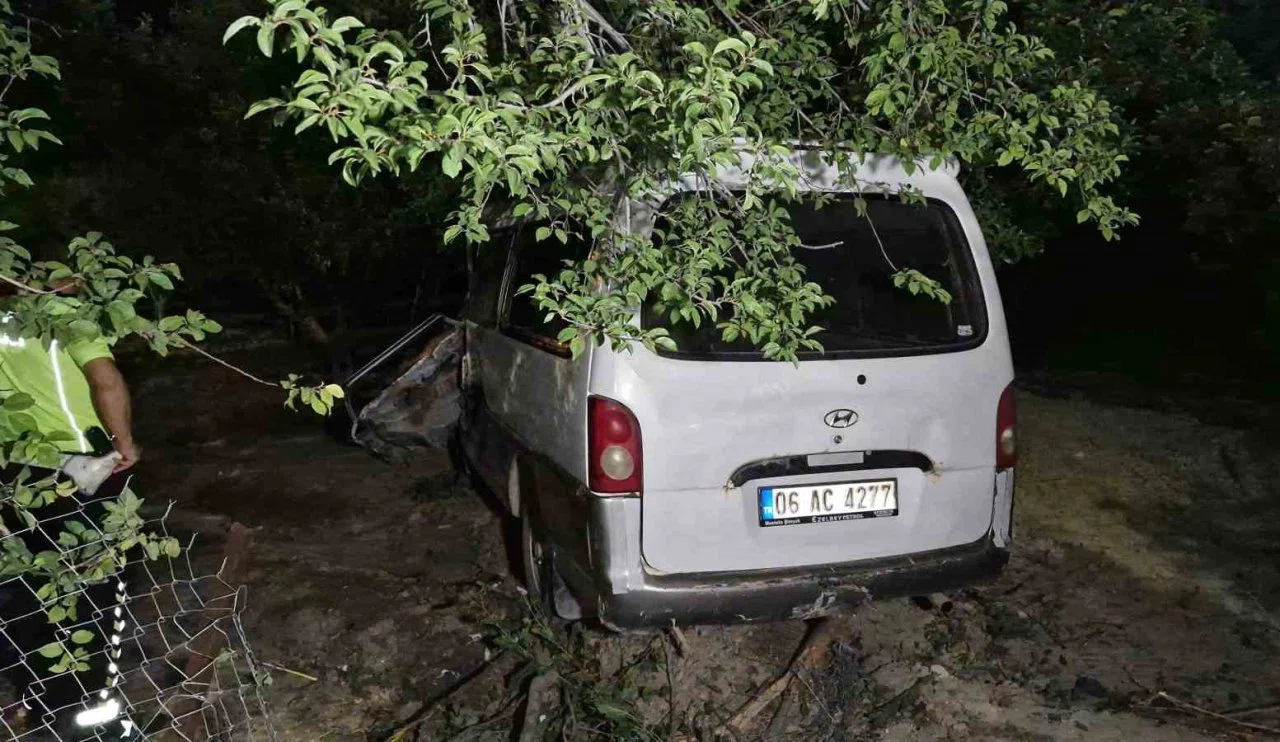 Edinilen bilgiye göre, Cuma K. (54) idaresindeki 06 AC 4277 plakalı Hyundai marka minibüs sürücüsünün direksiyon hakimiyetini kaybetmesi sonucu kontrolden çıktı. Yol kenarındaki tel örgüleri yıkarak elma bahçesine uçan minibüs ağaca çarparak durabildi. Kazada minibüs sürücüsü araç içerisinde sıkışarak yaralandı.