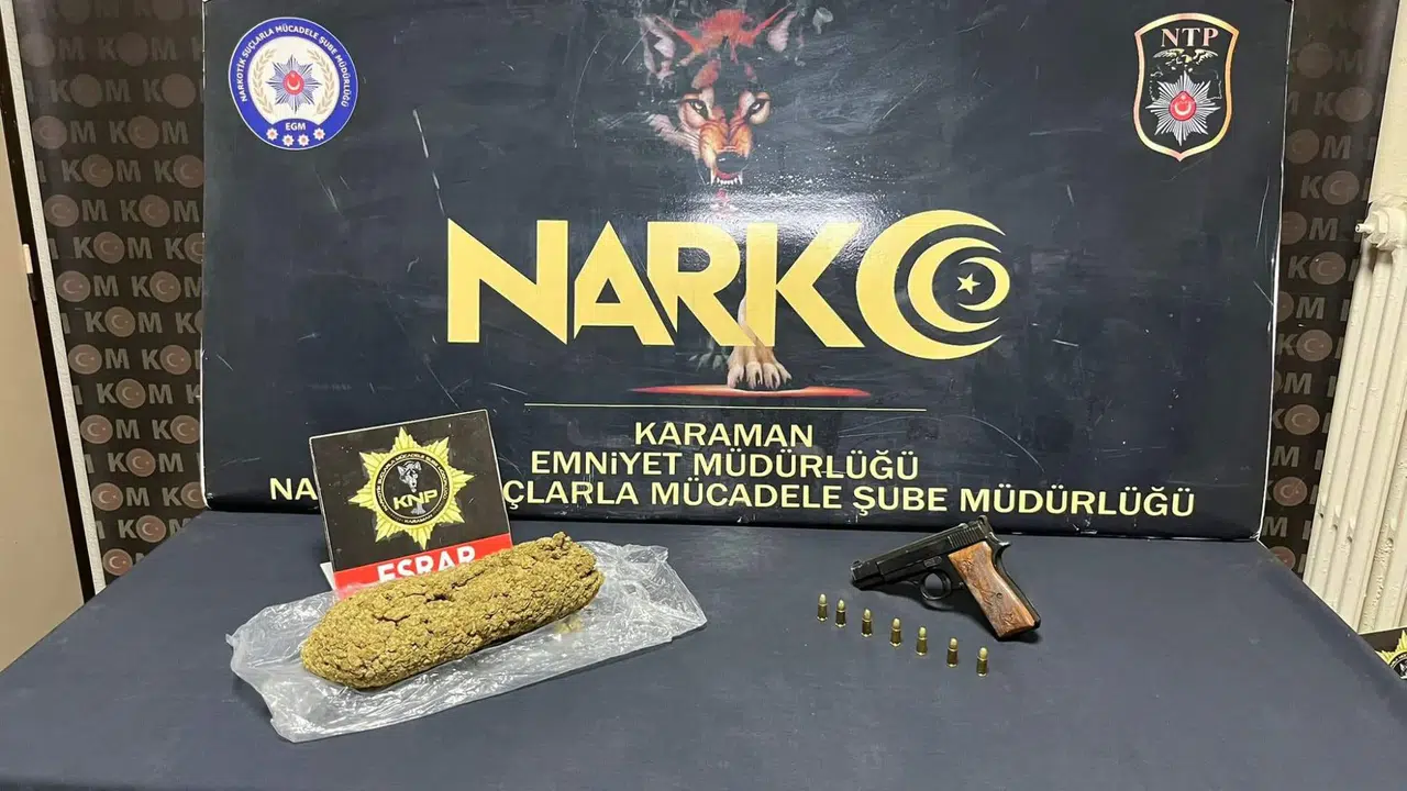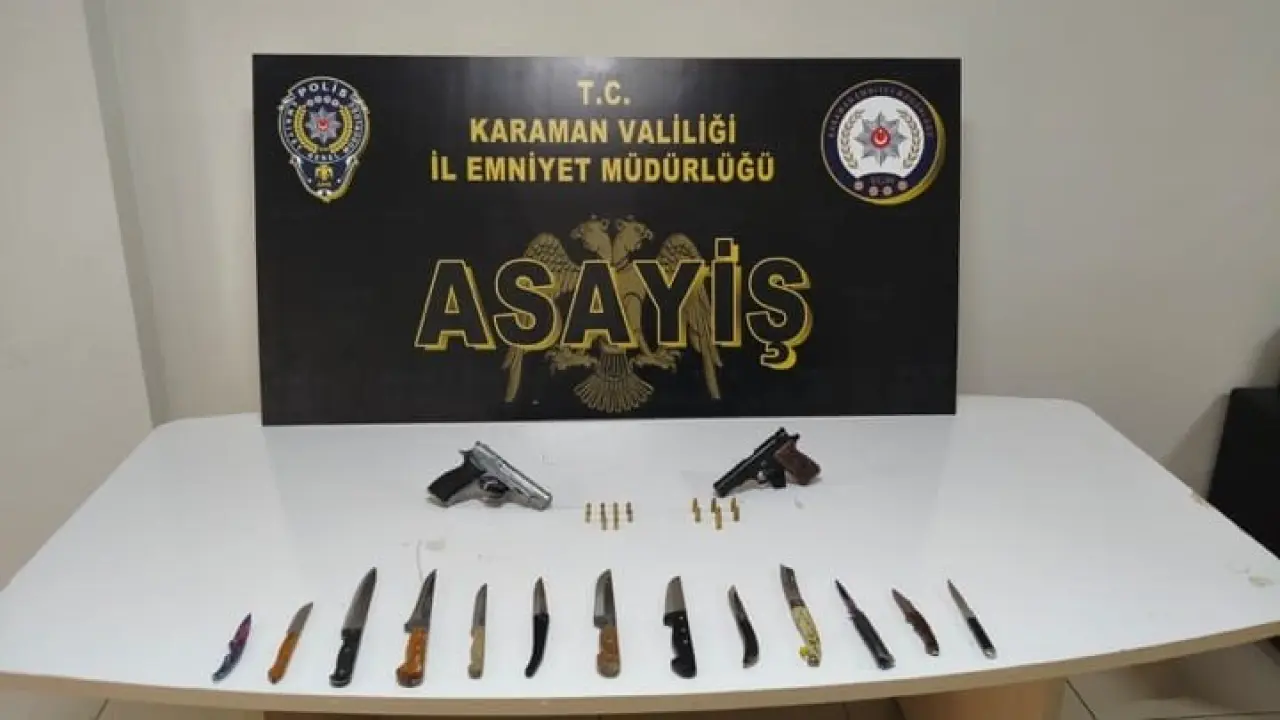 Asayiş ve narkotik uygulamalarında yapılan aramalarda; 5 ruhsatsız tabanca, 4 ruhsatsız tüfek, 50 tabanca ve av tüfeği fişeği, 14 kesici-delici alet, 401 gram esrar, 7 gram metamfetamin, 5 gram bonzai hammaddesi, 1 gram eroin, bin 591 adet sentetik hap ile 50 litre etil alkol ele geçirildi.