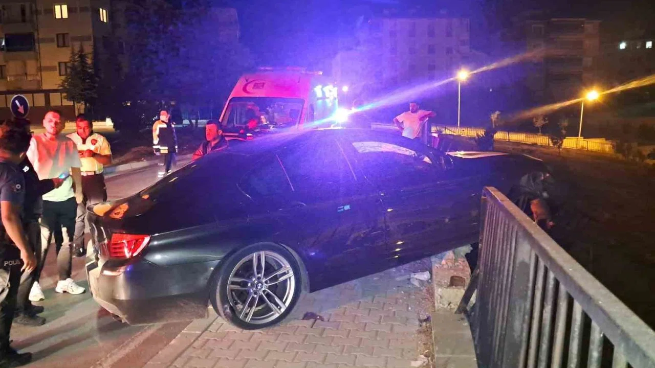 Hızını alamayarak kaldırımı aşan araç daha sonra üst geçidin demir bariyerine çarparak asılı kaldı. Kazada otomobilde maddi hasar oluşurken, sürücü ise aracı terk ederek olay yerinden kaçtı.