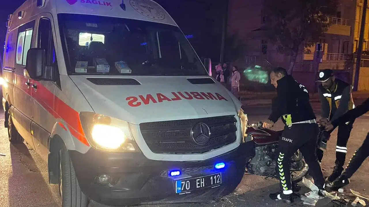 Edinilen bilgiye göre, kazada yaralanan bir kişiyi hastaneye götüren A.T. idaresindeki 70 EH 112 plakalı ambulans, kavşakta U.P. yönetimindeki 70 AL 728 plakalı motosikletle çarpıştı.