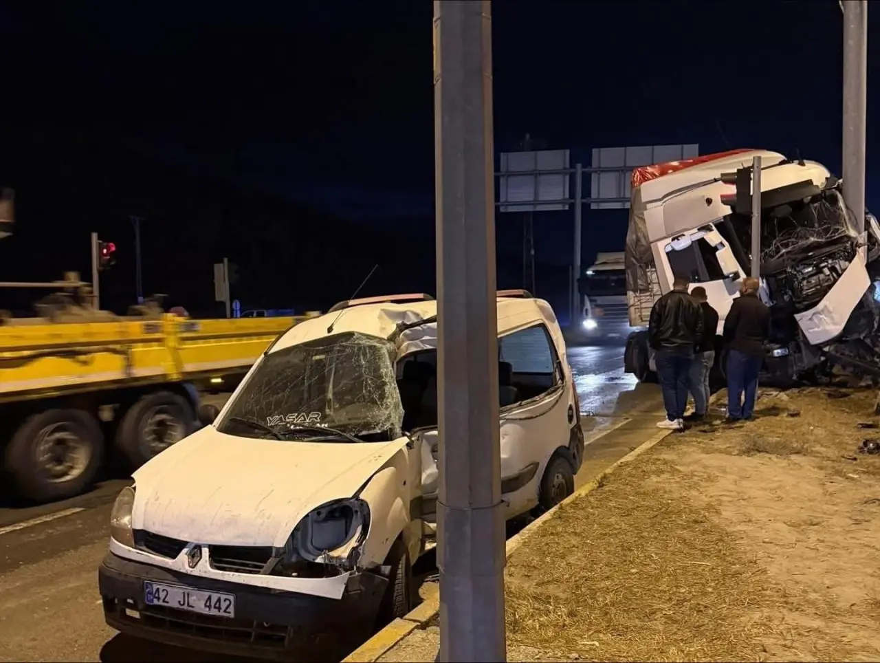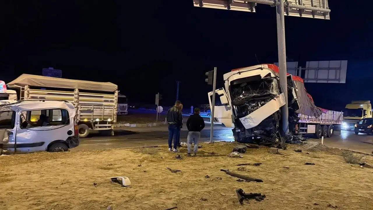 Edinilen bilgilere göre, bir tır ile hafif ticari araç kavşakta çarpıştı. Çarpışmanın şiddetiyle araçlar orta refüjdeki yön levhasına çarparak durabildi.