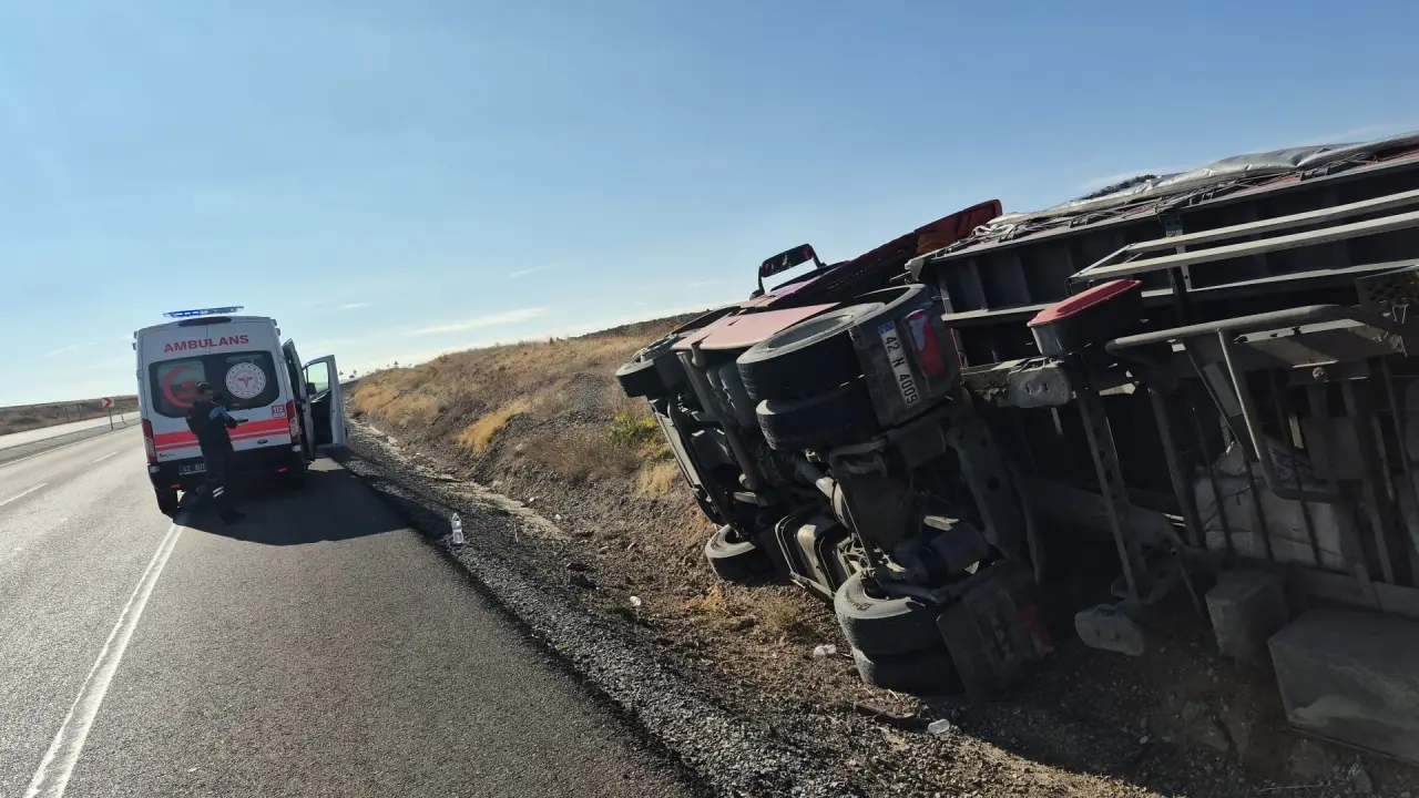 Konya'nın Kulu ilçesi yakınlarında kontrolden çıkarak devrilen tırın sürücüsü hafif yaralandı.