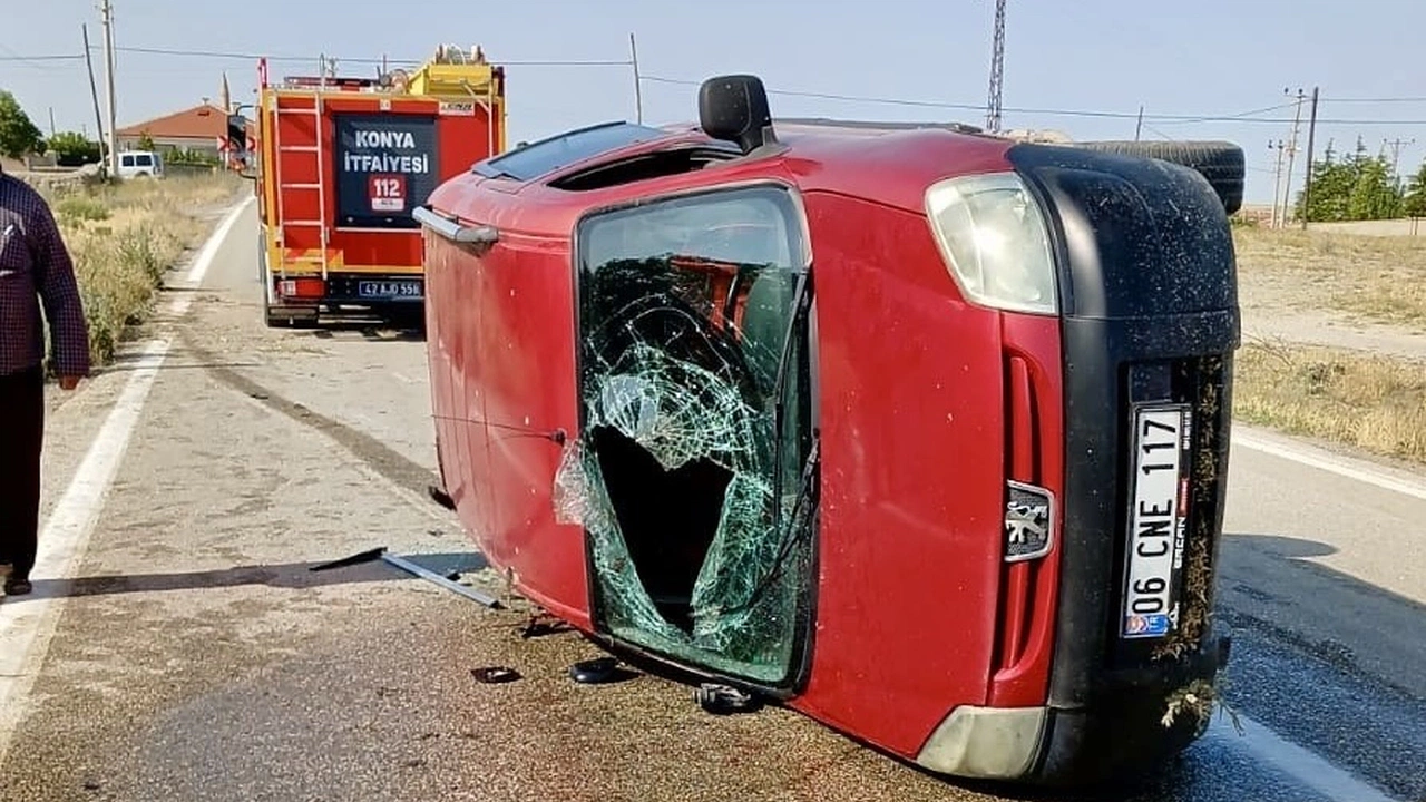 Konya’da kontrolden çıkan otomobil devrildi: 4 yaralı