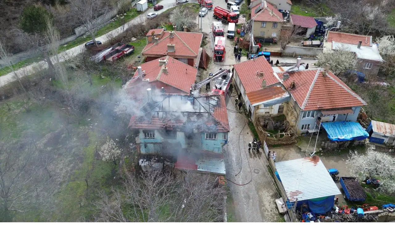 Konya’nın Akşehir ilçesinde sobadan çıktığı değerlendirilen yangın, iki katlı müstakil evi küle çevirdi. Ev sahibi son anda dışarı çıkarak kurtuldu.