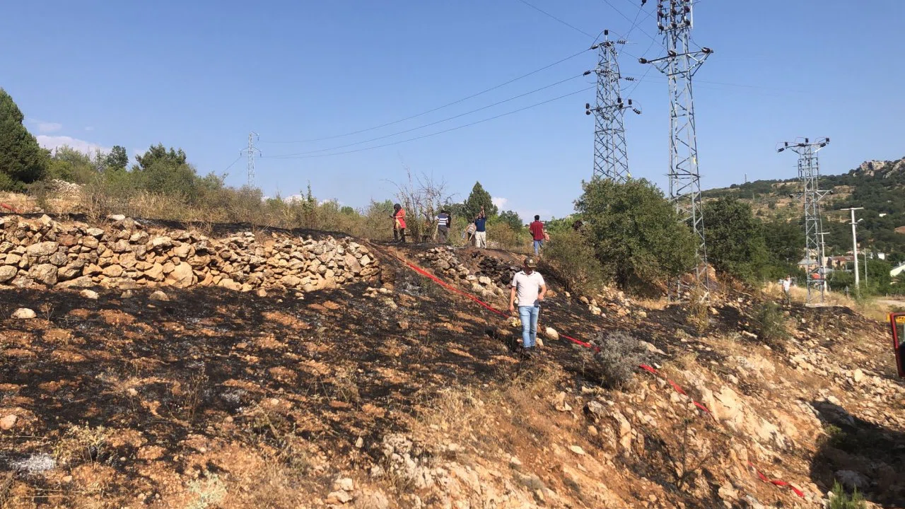 Konya'nın Bozkır ilçesinde yol kenarındaki otluk alanda çıkan yangın paniğe sebep olurken, ağaçlara sıçramadan itfaiye tarafından söndürüldü.