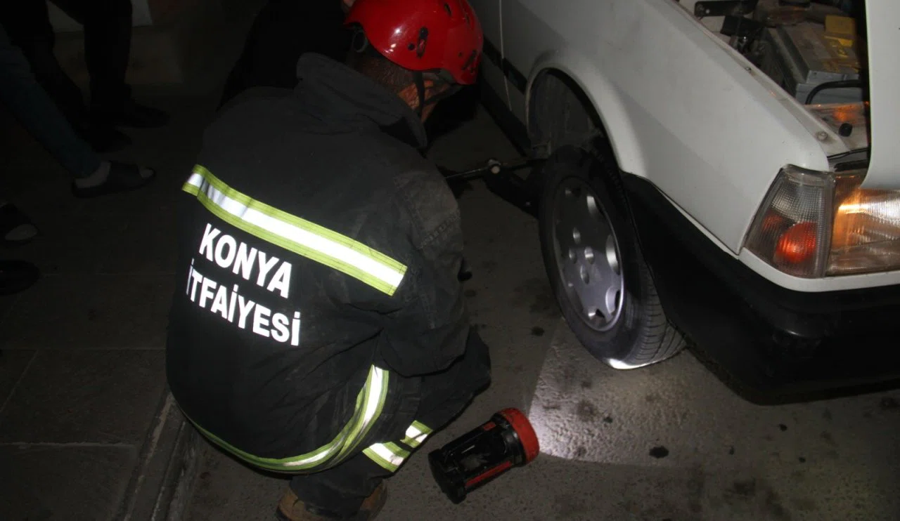 Yılanın, otomobilin ön lastiğinin jantı arasında sıkıştığı tespit edildi. Vatandaşların kendi çabalarıyla yaptıkları müdahaleler sonuçsuz kalınca Konya Büyükşehir Belediyesi İtfaiye ekipleri olay yerine çağrıldı.