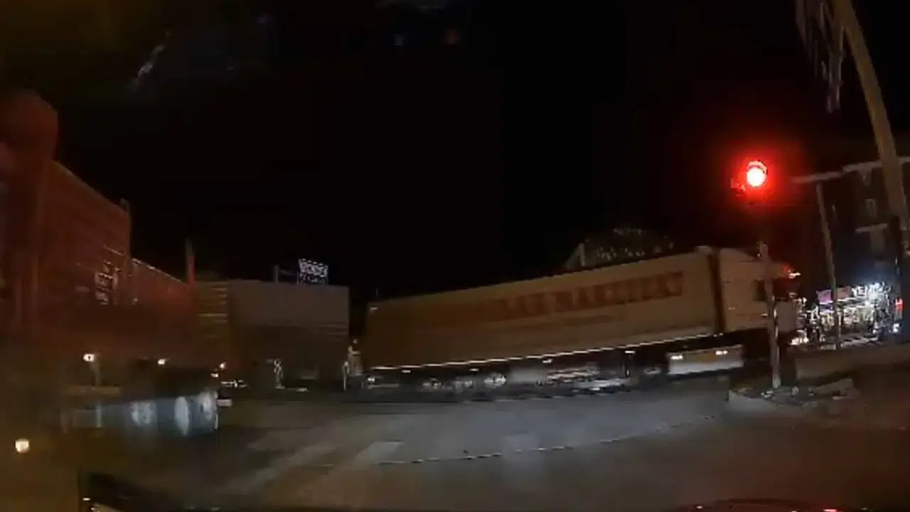 Görüntülerde, kırmızı ışıkta bekleyen aracın önünden tırın geçişi sırasında kapağın savrulduğu, şans eseri herhangi bir temasın yaşanmadığı görülüyor.