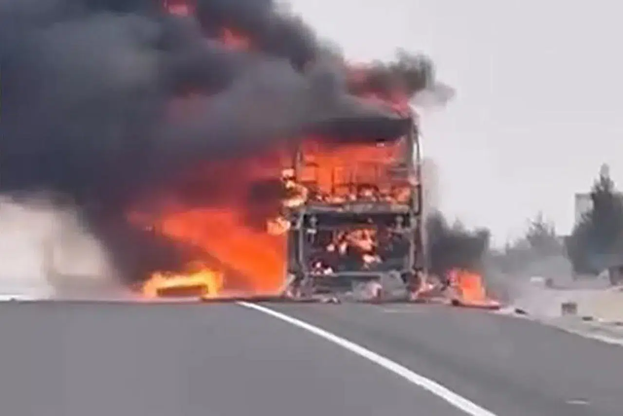 Alevler kısa sürede tüm aracı sardı. Yangında yolcular eşyalarını kurtararak otobüsten tahliye edildi.