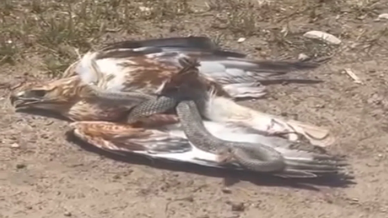Yılan, kartalı sıkı sıkıya sararak hareket etmesini engelledi. Kartalın uçmaya çalışmasına da müsaade etmeyen yılan, talihsiz yırtıcı kuşu tüm çırpınışlarına rağmen serbest bırakmadı.