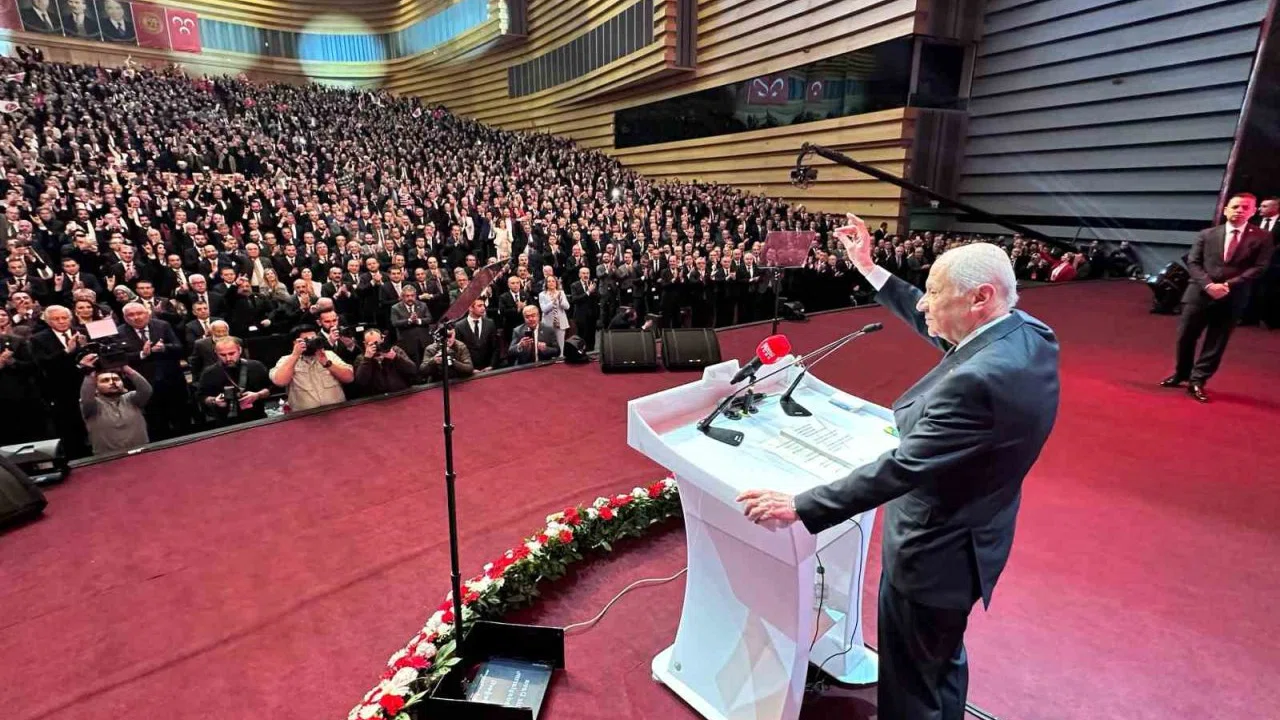 MHP'nin Türk siyaseti ve milletinin ilerleyiş kolu, istiklal kolcusu ve iftihar kutbu olduğunu söyleyen Bahçeli, "Parti enflasyonunun yaşandığı günümüz Türkiye'sinde Milliyetçi Hareket Partisi köklü yapısıyla, kimlik ve kişilik kazanmış tecrübeli siyasetiyle dünyayı A'dan Z'ye Türkçe kavrayışıyla, hayatı ve hadiseleri fikri kuşatmasıyla milli gönüllerde taht kurmuştur" diye konuştu.