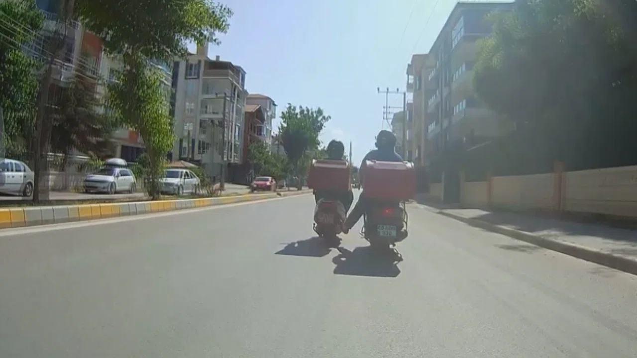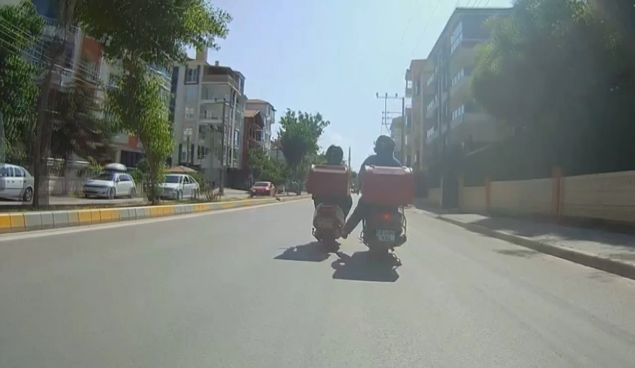 Görüntülere yansıyan olayda, iki motosikletli kurye şehir içi trafiğe çıkarak kilometrelerce bu şekilde seyretti. Motosikletliler hem kendi canlarını hem de diğer sürücülerin güvenliğini tehlikeye attı.
